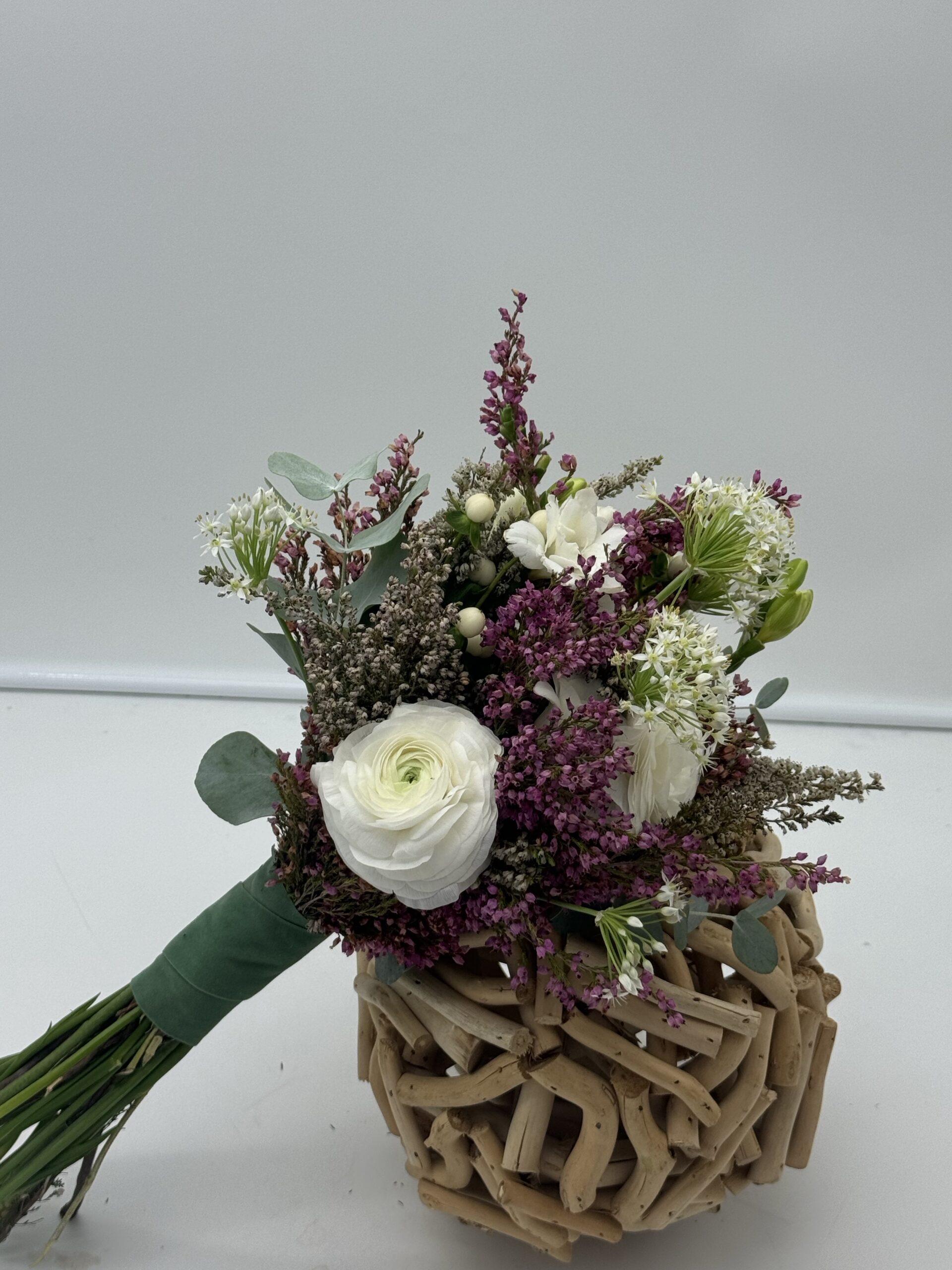 Ramo de novia otoñal desestructurado de distintos tipos de flores