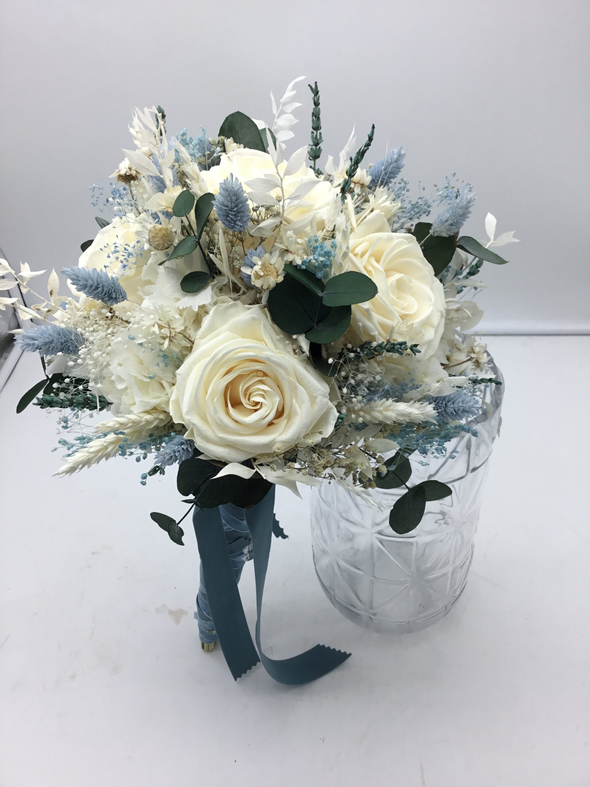 Ramo de novia otoñal desestructurado de distintos tipos de flores