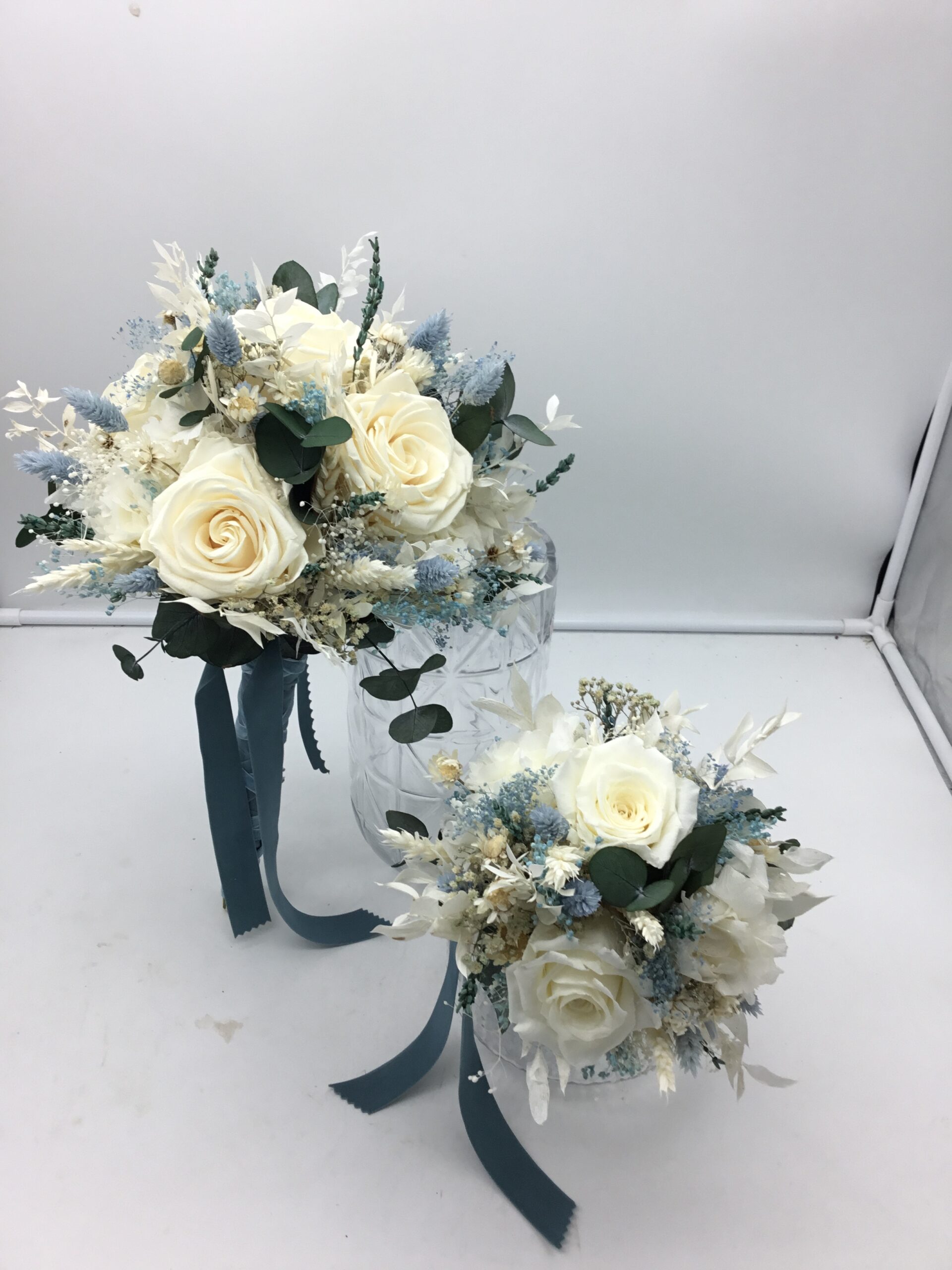 Ramo de novia romantico compacto de varias tonalidades con rosas y peonias