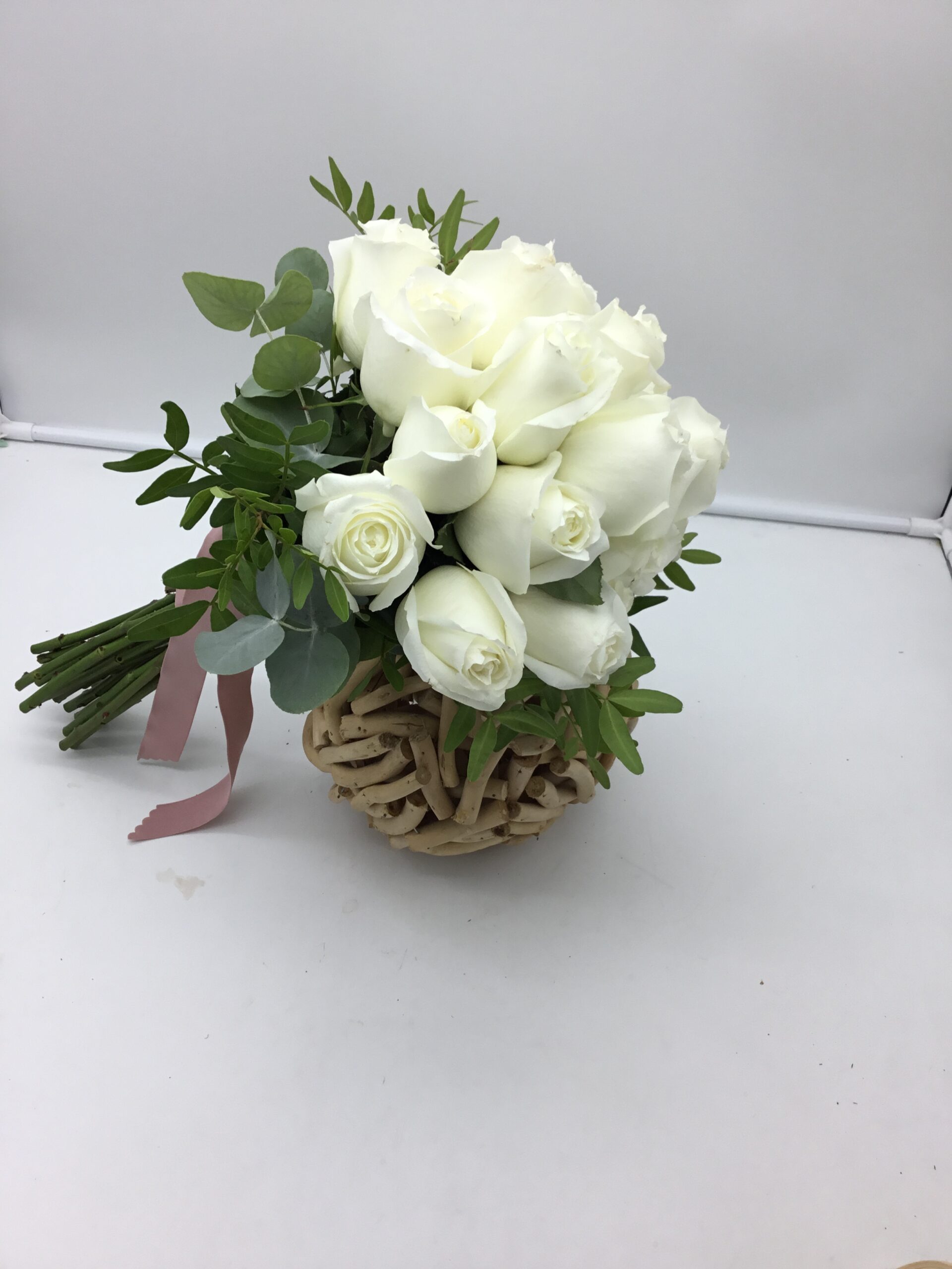 Ramo romántico,coqueto,de latyrus blanco y boubardia